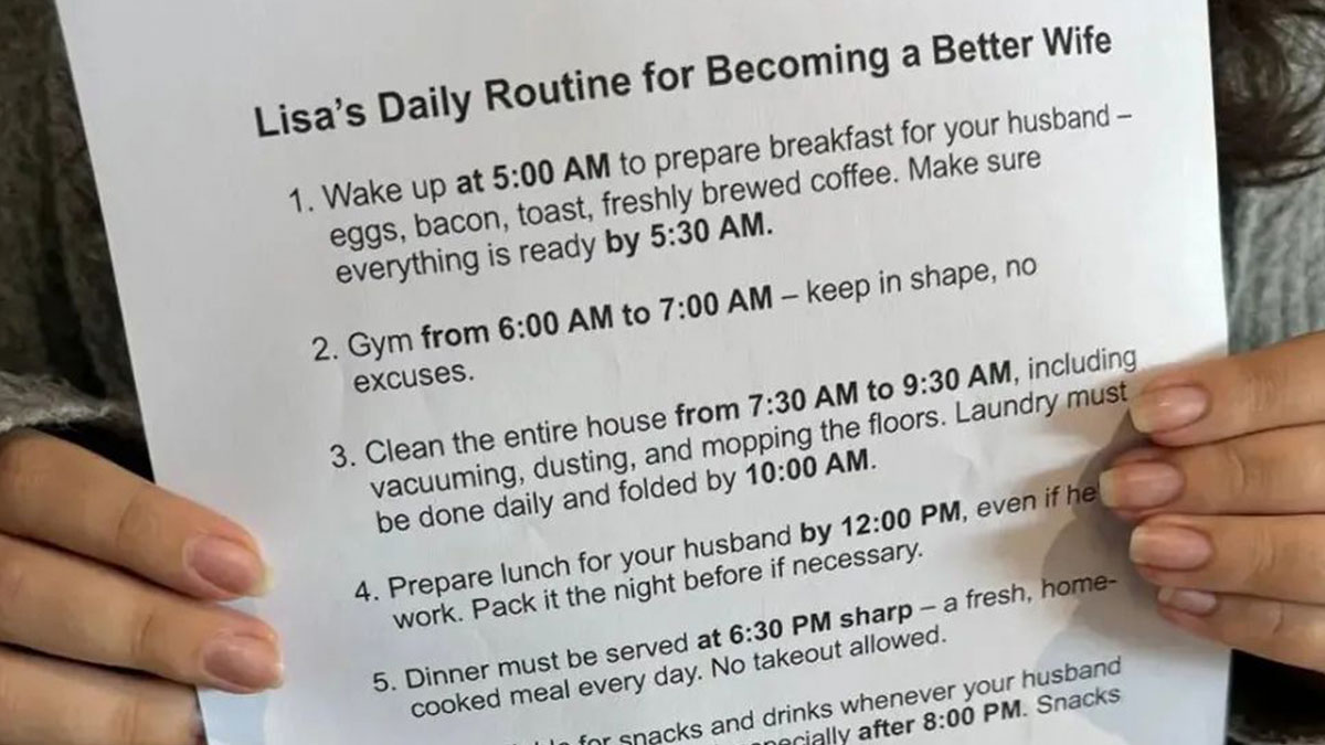 Recently, there’s been a certain list circulating online. Titled “Lisa’s Daily Routine for Becoming a Better Wife”, it has taken the internet by storm. People on many different social media platforms, from Threads to TikTok and Reddit, are reacting to it. And – spoiler alert – many are pretty furious about it.