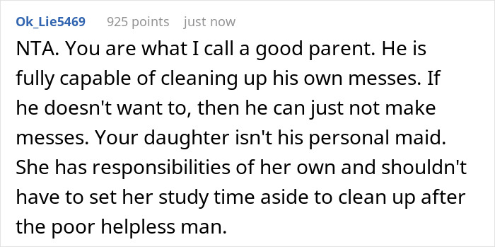 “AITA for telling my husband my daughter doesn’t have to accommodate his needs?” – this internet user took to one of Reddit’s most judgmental communities, asking its members if she was wrong to tell her husband to grow up and start cleaning up after himself after she caught him exploiting her daughter who came home from college to study for finals. The post managed to garner over 16K upvotes as well as 2.2K comments discussing the situation.