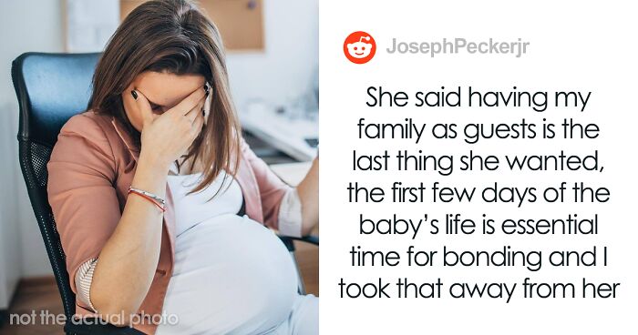 A man shared on r/AITA how his pregnant wife got upset over him inviting his whole family over for a week right after she gives birth