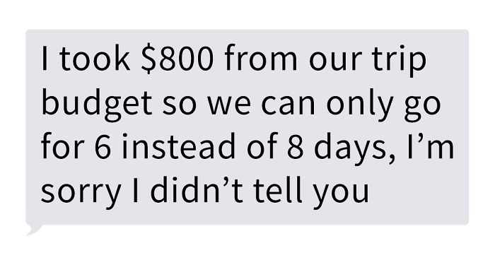 Some boyfriends and husbands make sure that their relationship is never boring. This story is about one of them. Recently, he took $800 from his and his partner’s holiday budget, shortening it by a couple of days. And he did it without them knowing.