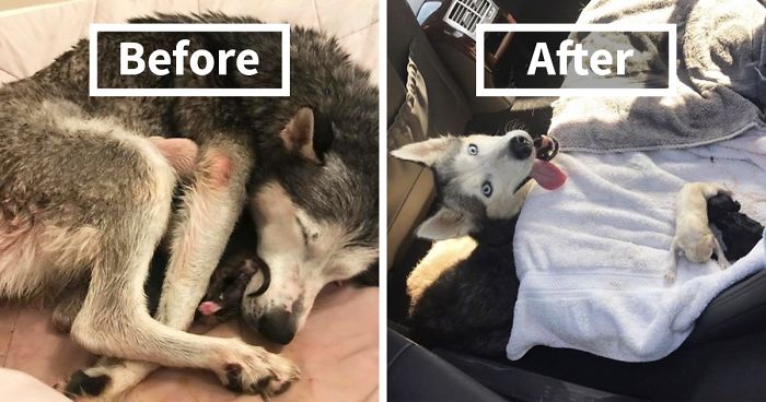 Within moments, the Husky started bringing her puppies into the world. Taylor immediately decided to take the growing family home and give it all the care it needed, even if temporarily.