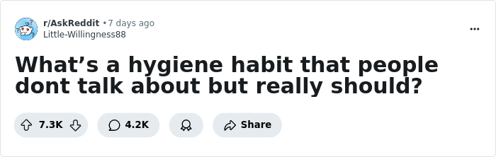 Someone asked “What’s a hygiene habit that people don't talk about but really should?” and people detailed all the things more folks need to start doing. So get comfortable as you scroll through, upvote your favorites and share your own examples in the comments section below.