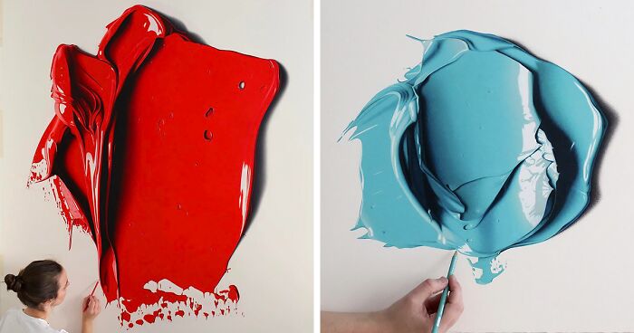 Titled Complimentary Colors, the colorful drawings were commissioned by the fashion brand Christian Louboutin for an exhibition during Art Basel Hong Kong. Even though the unique artworks look like big blobs of paint, the only thing Hendry used for the pieces was colored pencils. It took a lot of patience, layering the dry pigment, and expert handling of the medium, but the final realistic art pieces created were so full of sheen and viscosity, you’d never believe they are indeed pencil drawings. Keep on scrolling to check them out.