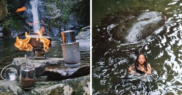 I make coffee with the water of this stream, and sit right next to the “Heaven waterfall”