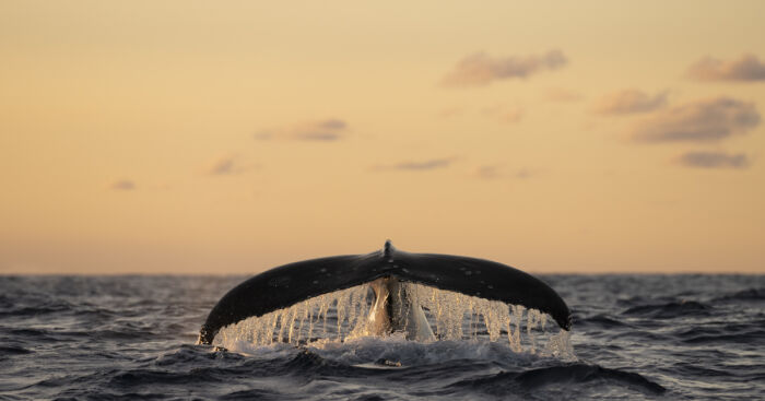 The photograph captures the breathtaking sight of a humpback whale's tail fluke as it dives deep into the ocean. The intricate patterns and textures on the fluke create a stunning visual spectacle. This image symbolizes the mystery and allure of these marine creatures, inviting us to delve into the hidden depths of their world.
