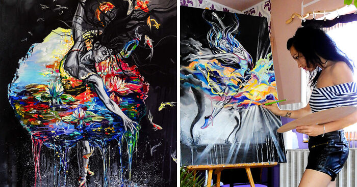 I Combined Oil Painted Ballerinas With The 4 Classical Elements To Respect Dancer’s Hard Work Behind The Scene