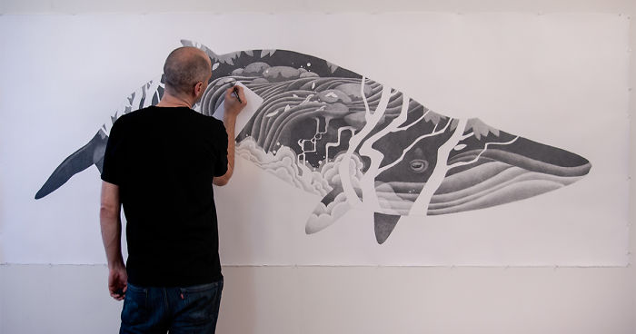 I Create Large-Scale Whale Drawings Using Hundreds Of Pencils As An Ode To My West Coast Home