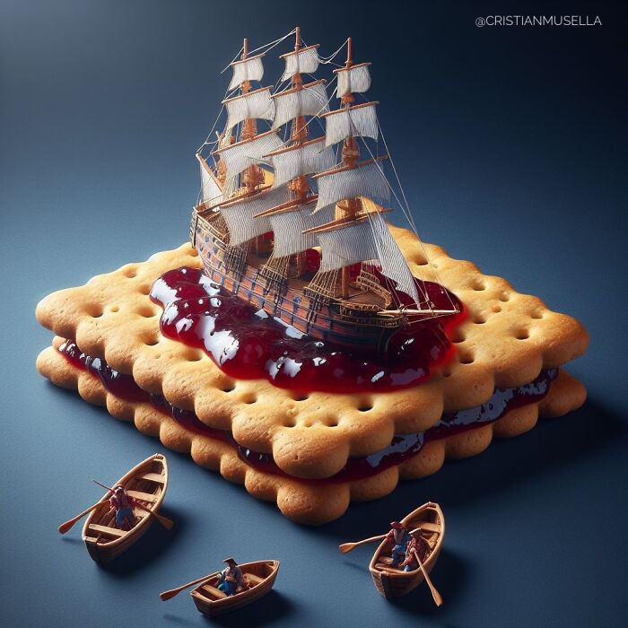 My name is Cristian Musella, I was born in Naples but I have been living in Milan for 15 years. I worked in communication as an Art Director for 13 years, and currently, I am a trusted guard. My passion for miniatures is something that has been with me since childhood, a hobby I cultivated with my father creating dioramas. Years ago, I rediscovered my abandoned miniatures in the cellar and decided to breathe new life into them, bringing them with me to Milan and starting to create surreal settings using everyday objects and food.