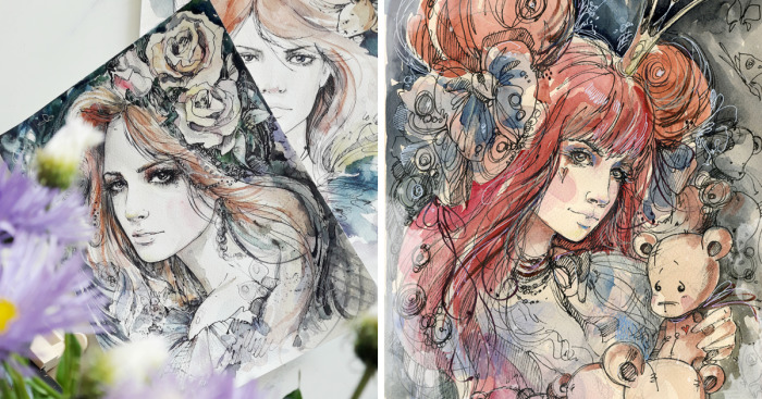 My passion is art in all kinds. I create my own fairy tales on paper. Watercolor and ink are tools for me, because I love graphic. My favorite fairy tale is Alice in Wonderland. I create a lot of illustrations with Alice.