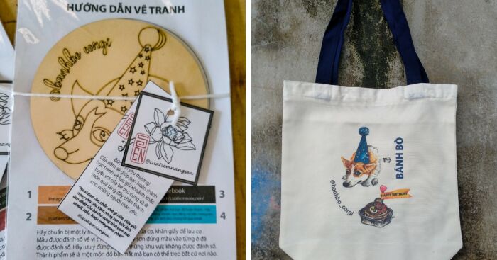 The dogs are so beautiful, I feel happy to paint them with watercolors. And I wanted to bring these pictures into everyday life, not just hanging on four walls. So I created a print on tole bags, t-shirts, and digital art on wood… Pet owners send me portraits of their animals. I will help them complete the drawings and print them.