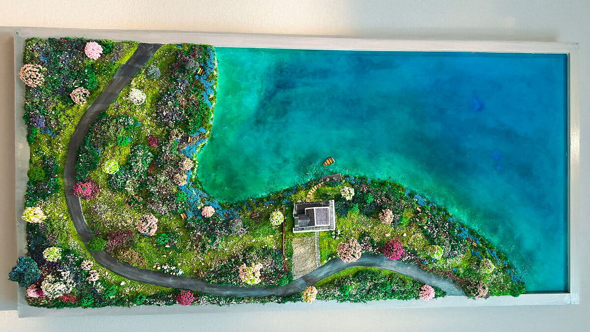 Every little tree, every flower, every path was made by hand. I used resin for the lake to capture the reflections and stillness of the water. Slowly, it started to come alive — her world in tiny scale.