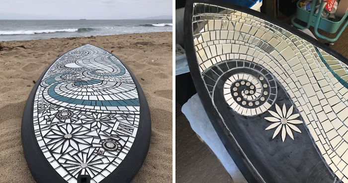 As one of 20 chosen artists and shapers for the Huntington Beach Rotary Club’s biannual “Surfboards on Parade” event that raises money for local charities…I created a unique fine art mosaic surfboard using mostly mirror, stained glass, metal beads and bits. I show the process of each step it took to create this one of kind surfboard.