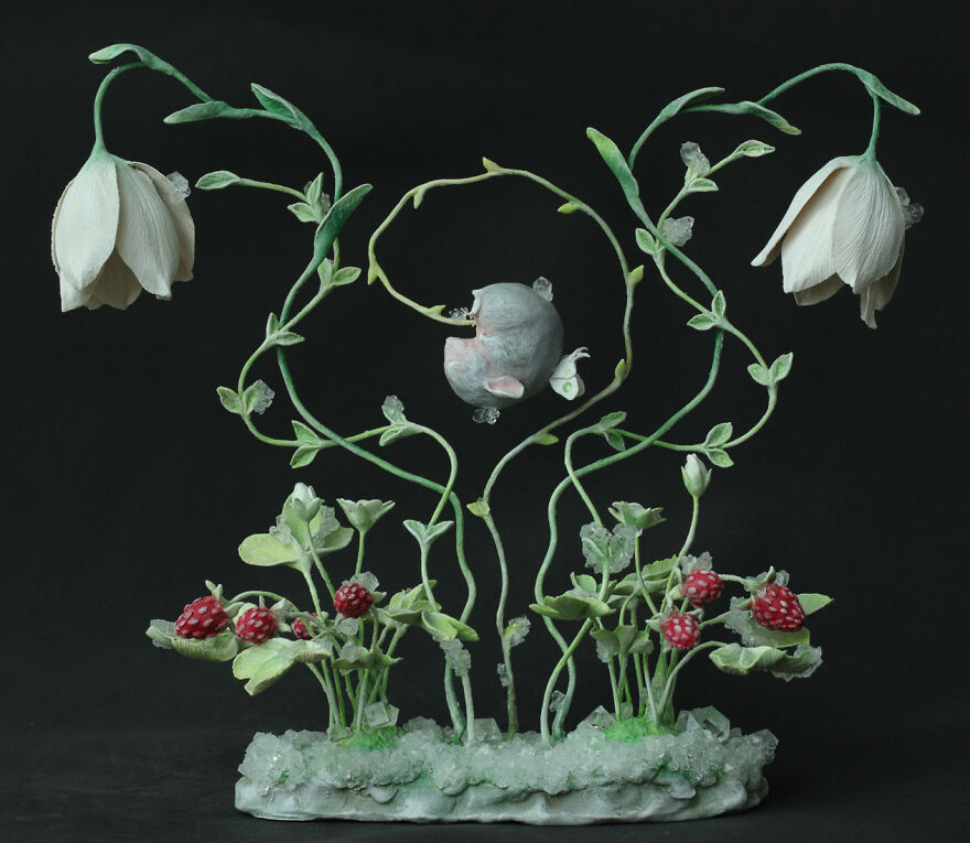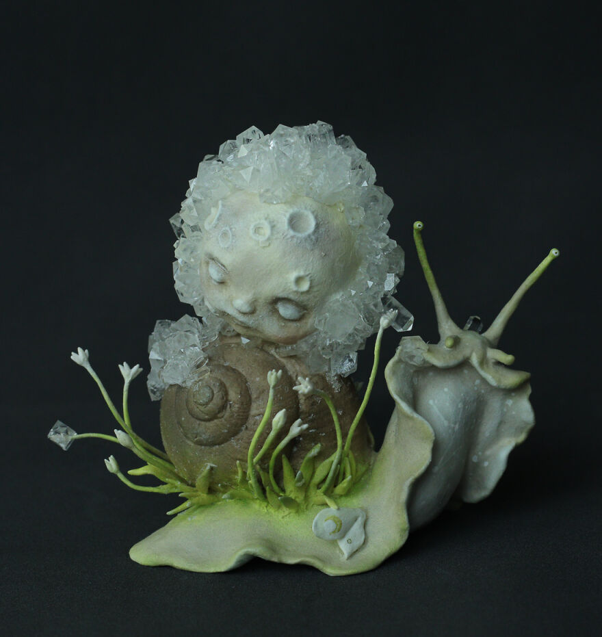 Let me invite you to the fantasy dimension. "Strawberry Mist" is my new collection of crystallized sculptures. I grow crystals directly on the sculptures using the crystallization process. Crystals on some pieces glow in the dark, adding an extra layer of awe and wonder to the already stunning pieces.