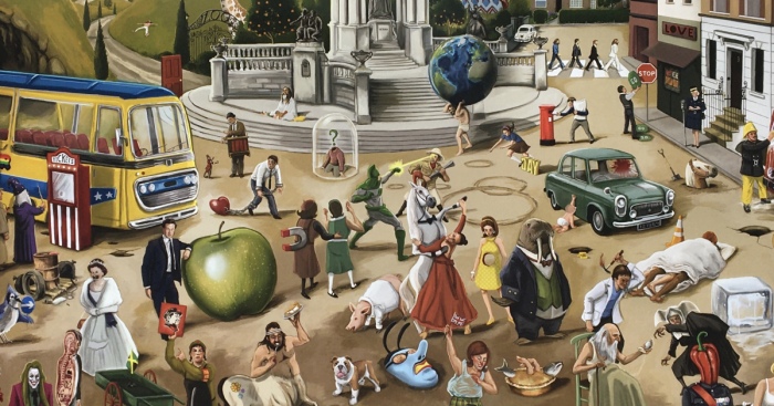 Titled, ‘Across the Beatleverse’, this poster print depicts lyrics from 75 Beatles songs and several hidden ‘Easter eggs’ in a surreal landscape.