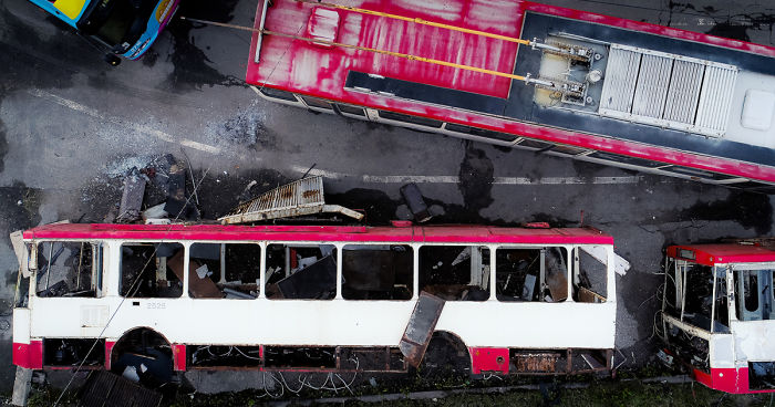 I created an image set of Vilnius public transport using my drone during evenings and nights. I visited a local public transport park and took a lot of random images. Sometimes I had to be careful and not to get too low because of electric wires (and those are not that easily seen on a controller screen). The first bunch of pictures reflects Vilnius public transport life and how it looks like from above. Later on you will find a distorted picture set. The distortion effect was achieved by using slow shutter speed and rotating drone. The straight lines of buses and trolleybuses became twisted and rounded and they look much more interesting than static. To me, each photograph looks almost like a painting because of soft color transitions and smooth lines.