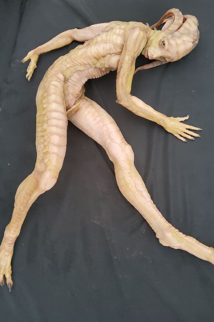 The doll was created in a technique – a large-scale silicone mannequin with a movable skeleton inside. Cast from Ecoflex 00-20 . Reptilian coloring, glass eyes… Size 77 cm.