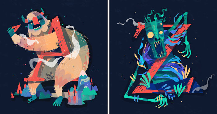 I designed letters of the alphabet based on mythical creatures/legendary monsters from various cultures across the world. I also drew monsters for the numerals 0-9.