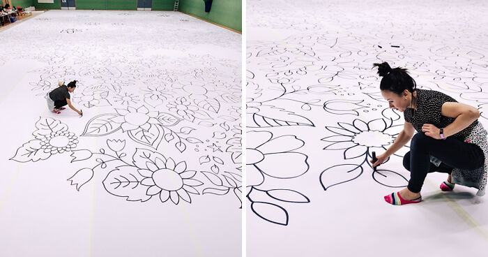 I asked people what stopped them from drawing and a common answer was that they were scared of the blank sheet of paper. I get it. Literally. I get that same fear! I think most creative people do at some point! So I wanted to tackle the World’s Largest blank sheet of paper to show people that the trick is to just start! The minute you start drawing (or doodling!) that empty piece of paper is less scary!