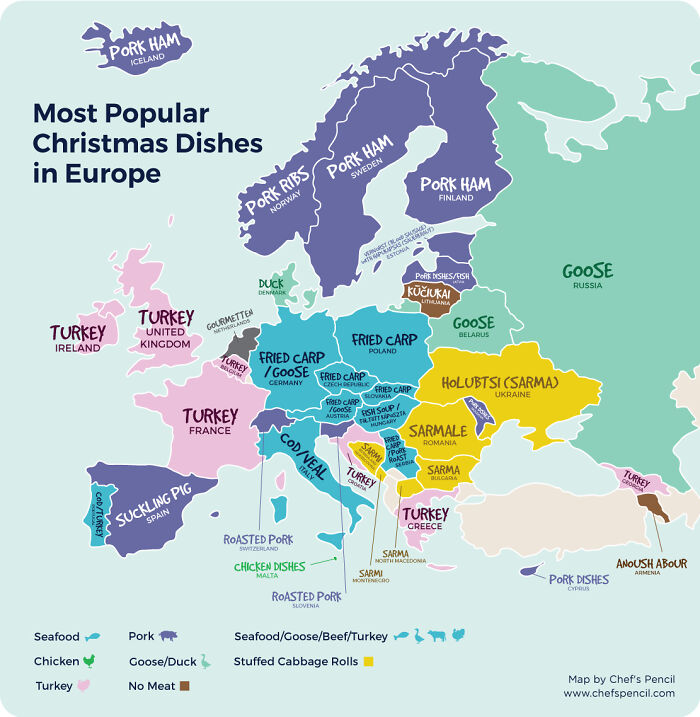 It might come as a surprise to some that pork is actually more popular than turkey around the world at Christmas time. Roasted suckling pig is the Christmas dish of choice in Argentina, Cuba, Spain, and Mexico, among others.