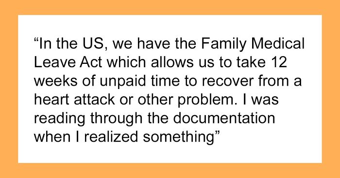 However, this Redditor has it bad. The thing is, u/Rhunt2021 suffered a heart attack, and despite doc’s orders of three months’ rest, HR expects them to be back on duty in one month maximum.