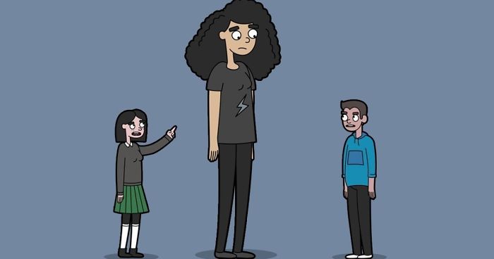 She mentioned the Tall N Curly comics... that's this person https://www.boredpanda.com/tall-curly-girls-comics-tallncurly/ and https://www.boredpanda.com/tall-girls-comics-tallncurly/