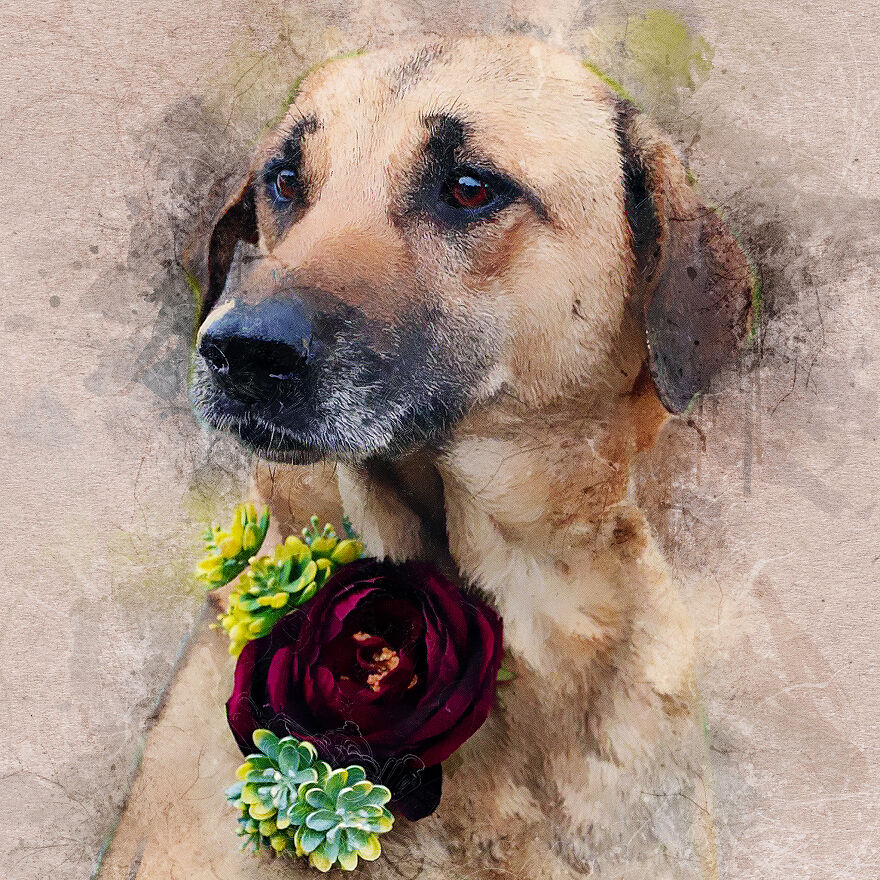 I have created 18 portraits of rescue dogs from our partner shelters in countries including Bulgaria, Greece, and South Korea. It’s hoped that my portraits will encourage people to open their minds and hearts to the dogs who need them the most and help them secure a loving forever home. I wanted to shine a light on these overlooked rescue dogs with my portraits, as they too need a loving home.
