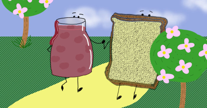 Toast and Jam were single, and they were not happy being alone. He was a great piece of toast, and she was a fantastic jar of Cherry Jam. Did they know how awesome they were? No, they thought they didn’t have a partner because they were not good enough! But it wasn’t true! They hadn’t met that right person yet!