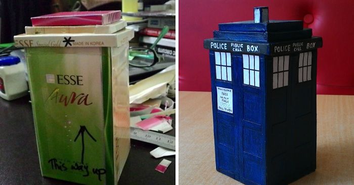 Art is a really big hobby of mine and I want to show everyone that cool things can be made even out of rubbish like cigarette boxes. I’m a major Whovian and making a “T.A.R.D.I.S.” was the first thing that came to my mind when I found a bunch of empty cigarette boxes in the cupboard.
