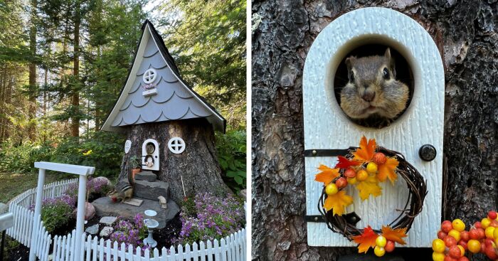 These houses are adorable. So are the chipmunks. Unfortunately, the chipmunk that came around to my house daily for peanuts died in my neighbor's pool. I had only one chipmunk in my yard, too. Bummer.