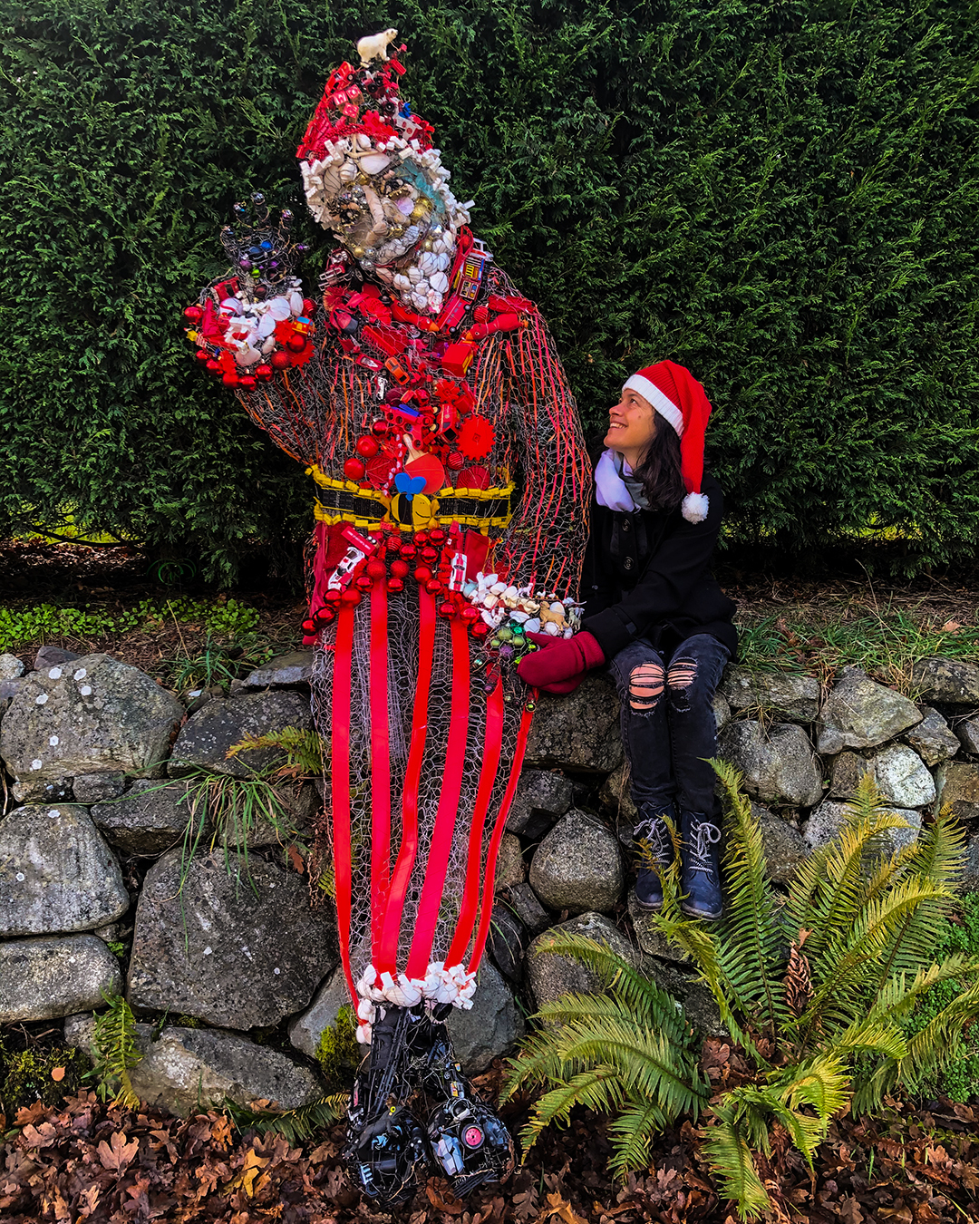 Since all the Santa events were cancelled this year because of COVID I made a giant sentimental Santa out of the old Christmas Presents I’d given my kids over the years and put him in my front yard to give people a Santa photo op and a smile. I changed the lyrics to “12 days of Christmas” mentioning some of the odd special things on Santa and am running an advent calendar I-Spy game where people look for the new item I add every day to enter a daily draw for an art prize from December 1 until Christmas. Happy holidays everyone! Stay safe and find the magic wherever you can this year!