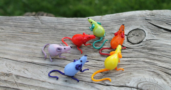 And guess what? They turned out awesome! Now, these little rainbow rats have found a cozy spot in his collection, hanging out with other cool glass figurines from artists all around.