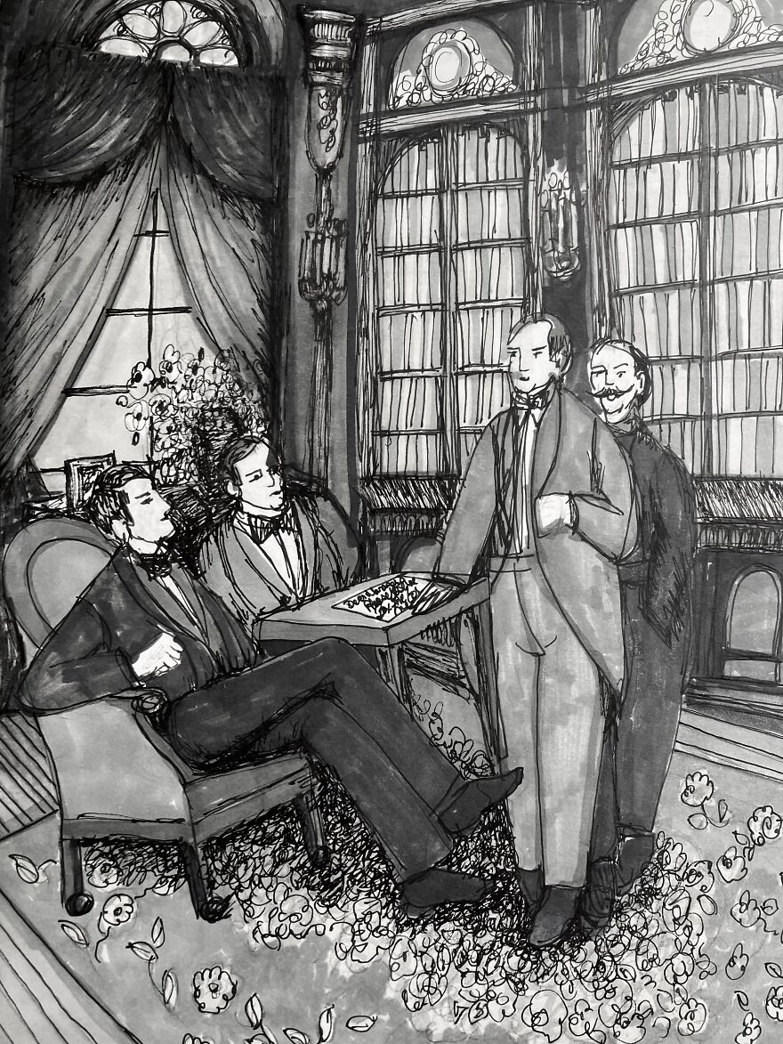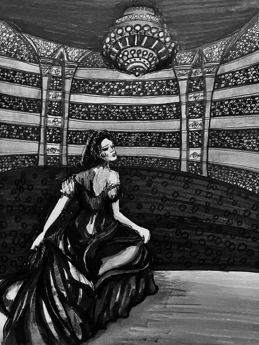 I spent a few months practicing my drawing and illustration skills by illustrating the Phantom of the Opera book, which is in the public domain. I got tired of the project and didn't finish illustrating the story.