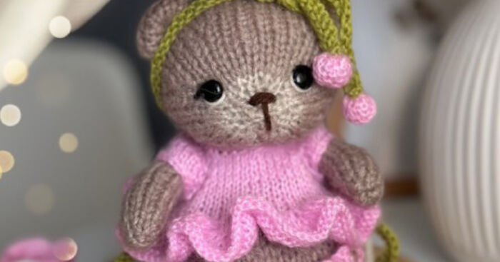 Knitting pattern spring outfit for girl bear by Ola Oslopova