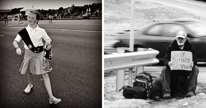 In 2009, I began studying photography. Diane Arbus's portraits have always fascinated me, and she was my primary inspiration. The photos I'm sharing were taken between 2009 and 2013 using both Nikon and Canon cameras. Some were captured from the passenger seats of cars, while others were close-ups. I've chosen to share these specific images because each one evokes a particularly strong emotion in me.