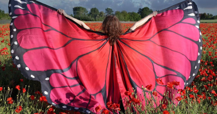 My name is Dorota, and my small business is Pracownia Dor. I do hand painted silk dance wings. My first wings were the wings of the Monarch butterfly - it still is one of the most popular models of wings.