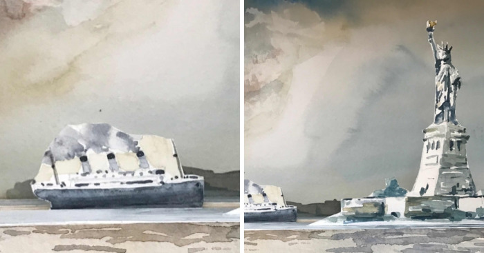 I made this painting to help support immigrants’ rights. “Breathe Free” depicts immigrants fleeing the storm of persecution while Lady Liberty stands firm as a beacon of hope. I decided I would create a one-of-a-kind moving painting to raffle off, with all proceeds going to the ACLU. As with all my paintings, they are made with multi-media, including watercolor, and gears that I designed and printed on a 3D printer. Please see BenRaynes.com for a chance to win this painting.