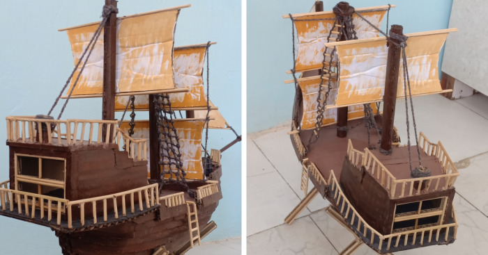 I made easy pirate ship using normal cardboard in 2 day complete work.