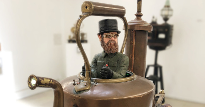 My gravitation towards industrial machines comes in part from the environment I was raised in rural North Yorkshire, England. The area was heavily industrial, filled with steam engines, ships, foundries, and metal workers. The work I create also reflects a combination of my skills over many years working in the film industry as a sculptor and special effects artist.