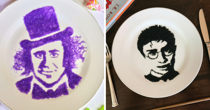 A few weeks ago I started making character pictures using sugar sprinkles. I made them at night so my kids had a surprise to wake up to in the morning. Each design was done freehand and I used only my fingers, toothpicks, and different colored sugar sprinkles for tools. Each picture took 30-40 minutes to make and some of my children’s favorite characters from movies and books were the inspiration.