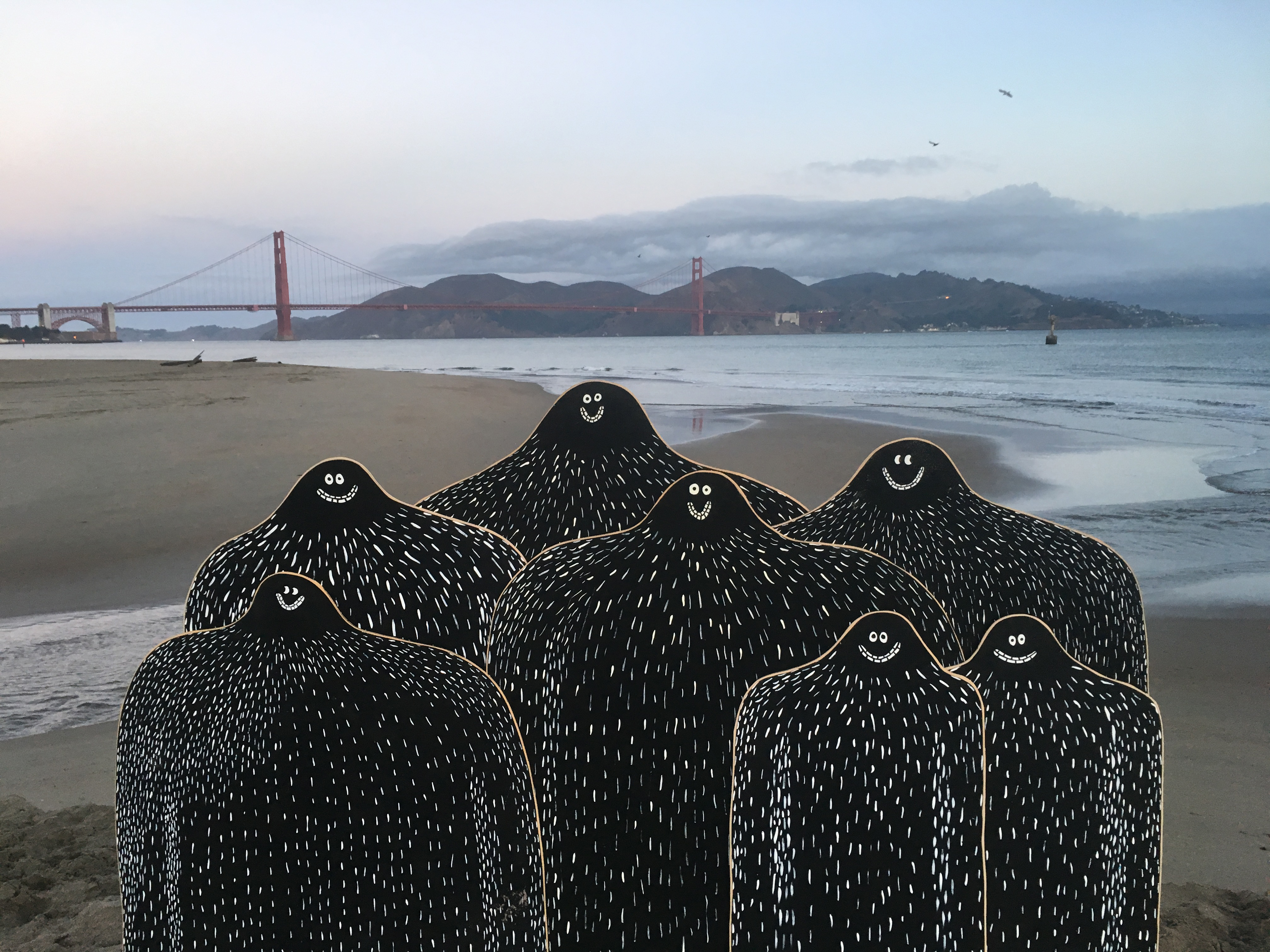 In 2018 I took a large herd of Lyles down to LA to an art fair in Santa Monica’s Barker Hangar. Without permission I arranged the herd against the hangar’s huge doors. The show organisers thought they were part of the hangar, and the hangar people thought they were part of the show, so the herd remained in place. They were a hit. Everyone smiled, and even the LAPD took selfies.
