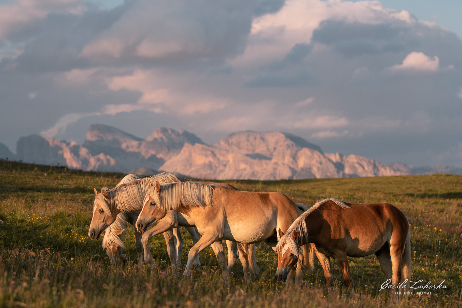 One of the native horse breeds of this region are Haflinger horses, they have a golden coat and flaxen white mane. I find it interesting to travel to places in Germany, Austria and South Tyrol (Italy) to photograph horses roaming through these scenic mountain landscapes.
