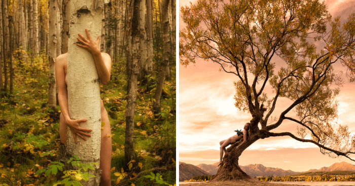 My name is TreeGirl and I love trees. I have spent the last twenty years photographing myself intertwined with some of the world’s most amazing trees. As an arborist and artist, I research and travel to each of the trees, spending anywhere from a few minutes to hours naked in wild nature to create a great shot using a remote-control timer and a tripod.