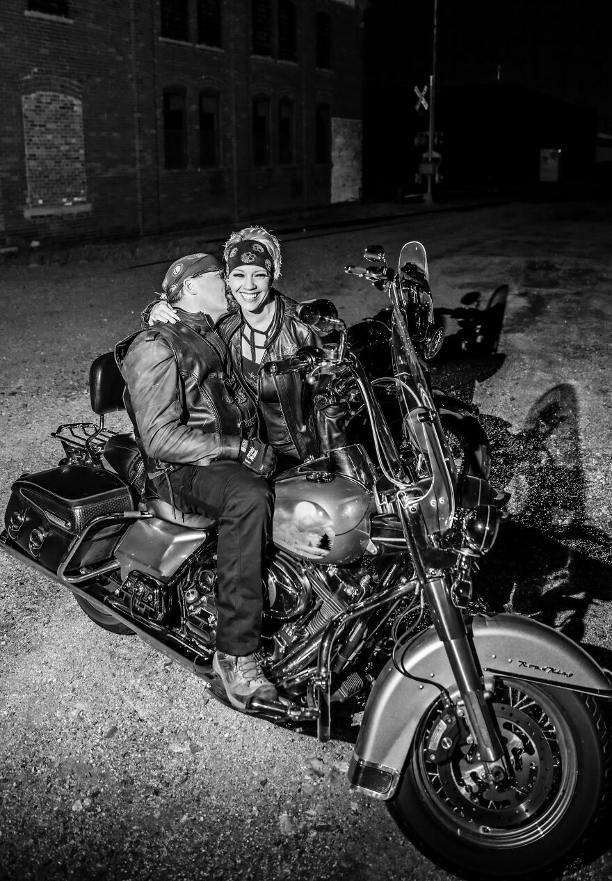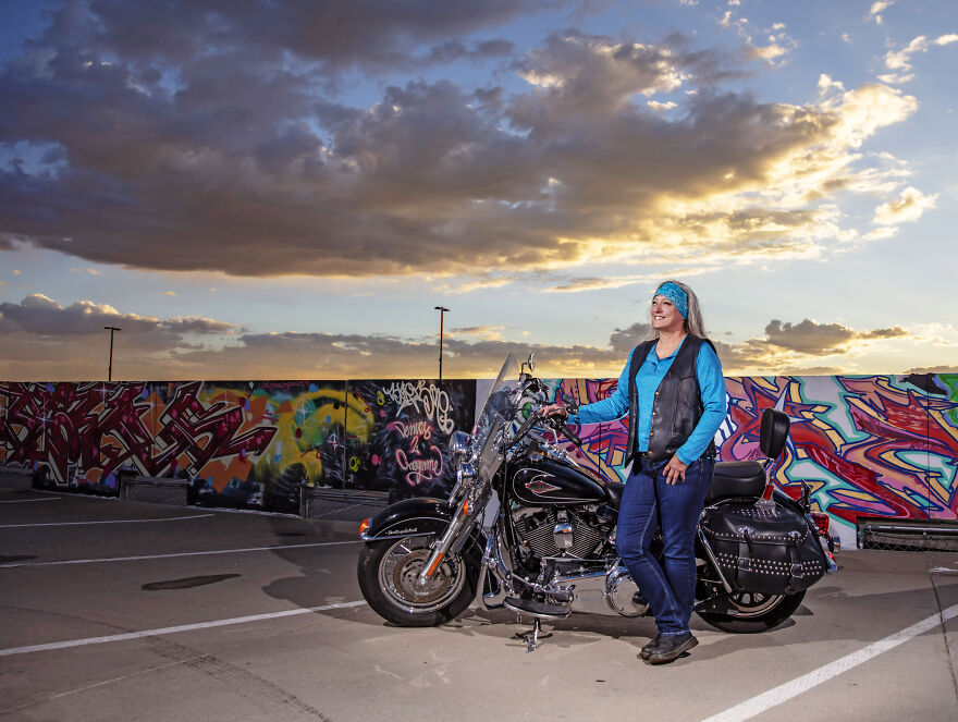 Beginning in September and ending in November of 2022, I did over 50 photo shoots of local bikers in different spots around Cheyenne, Wyoming. And I did not charge for my services or the photos - just asked that each client pays for the babysitter of my two young children while we were out shooting. The interest was slow at first, largely due to people’s distrust of free things, but eventually, I was doing a shoot every evening (sometimes two!). When asked why I was doing it, I had a simple answer: because I love it.