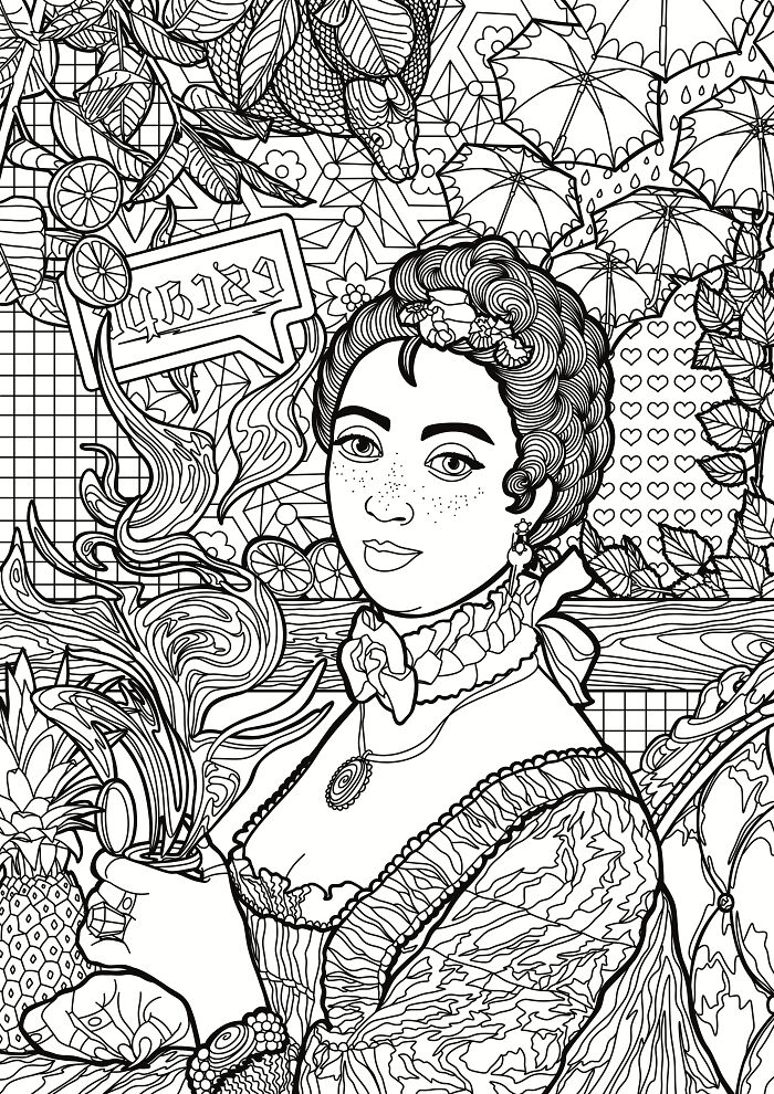 I Reimagine Classic Paintings As Bold, Maximalist Coloring Pages That Celebrate Modern Femininity