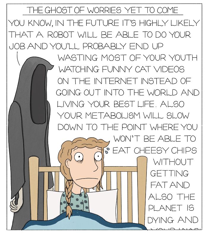 So, this Christmas, I have reimagined Dicken’s iconic spirits so that they represent some of the anxieties that often haunt me in the early hours.