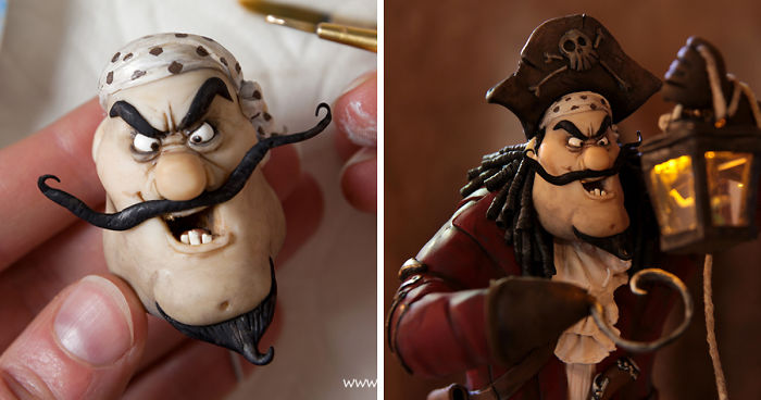 I’m a British miniaturist in Los Angeles, and I took a break from miniature sets and miniature props to dream up this 6 inch tall Captain Hook and I filmed my hands as I worked.