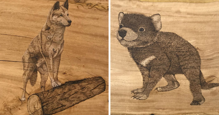 Last year for my Year 12 art project I decided I wanted to learn how to do pyrography, and use that medium for my final art piece. With some guidance from my teacher, I prepared the wood and then sat down for the first time with a pyrography pen. I spent over 50 hours working on my project, turning it in just in time. It was a set of three Australian animals burnt into a slab of Tuart, the work was titled ‘Imperilled’.