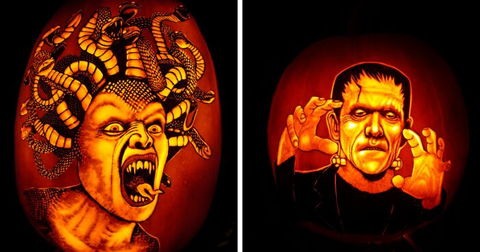 My name is Jamie and I'm obsessed with carving Pumpkins, here are some of my most recent Pumpkin carvings.