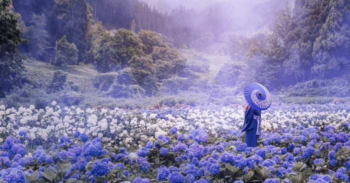It was very difficult for me to spend time without traveling during the lockdown, so my friends, trying to make my mood a little better, agreed to rent a camera, tripod, connect a laptop with the internet, and take all this equipment to a hydrangea park in Japan.