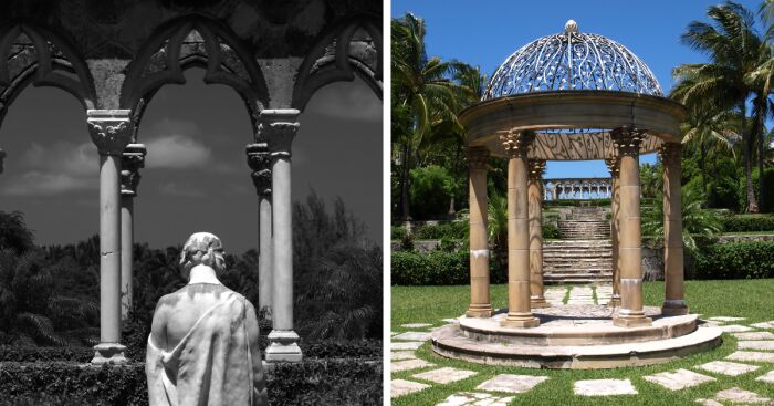 The eerie columns and arches of the reconstructed cloister encircle a magnificent marble sculpture called "Silence," created by Sir William Reid Dick. Walking down the stone path towards Nassau Harbor, you'll find a beautiful pergola with a wrought-iron lattice roof, perfect for photos or a wedding ceremony.